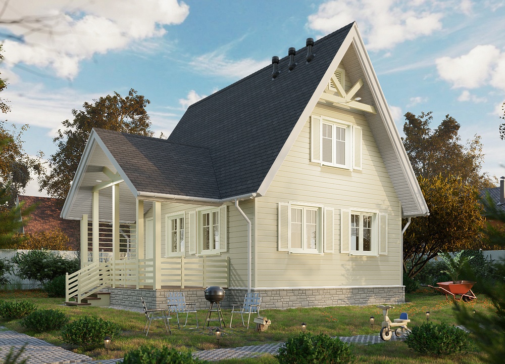 Сайдинг цвета спелого банана подходит для фасадов любой сложности и отлично показывает себя в непростых климатических условиях - не теряет насыщенности, не желтеет. Оттенок особенно красив в классических сочетаниях со светлыми аксессуарами и более темной кровлей.