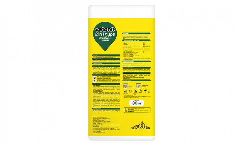 Штукатурка гипсовая weber.vetonit 2 in 1 gyps предназначена для базового и финишного выравнивания стен и потолков слоем 1-50 мм (локально до 100 мм).