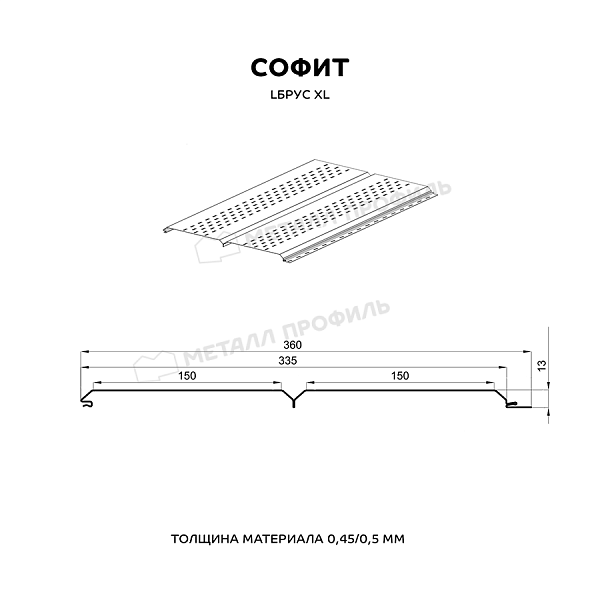 Софит МЕТАЛЛ ПРОФИЛЬ перфор. Lбрус-XL-14х335 (ПЭ-01-2004-0.45)